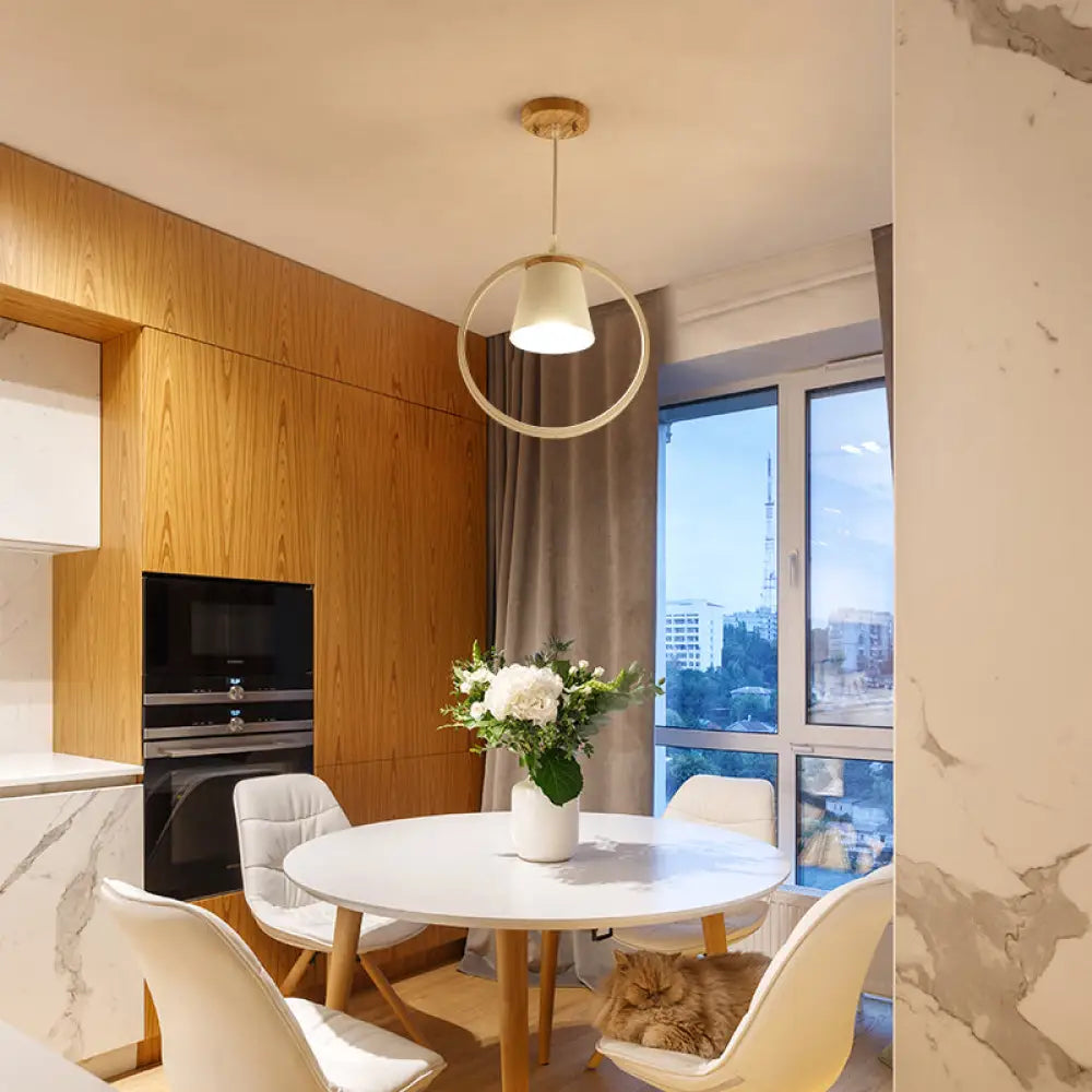 DecorBites™ DecorBites™ Sleek Metal Ring Semi Flushmount Fixture - Conic Shade Minimalism 1-Light Ceiling Flush Mount for Kitchen