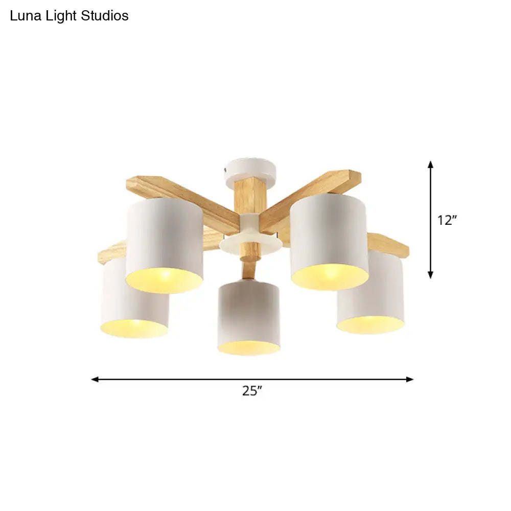 DecorBites™ DecorBites™ Sputnik Wooden Semi Mount Lighting - Nordic 5/6/8-Light Flush Ceiling Light with Metal Shade