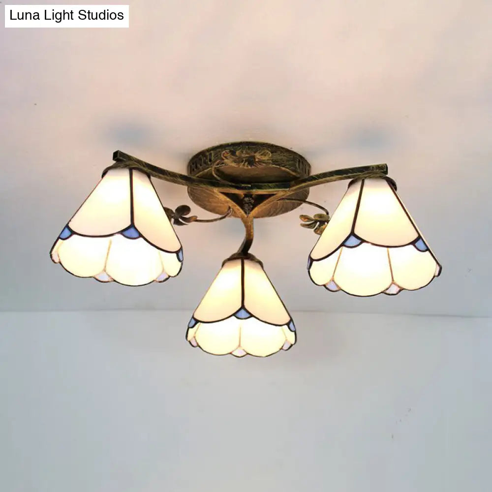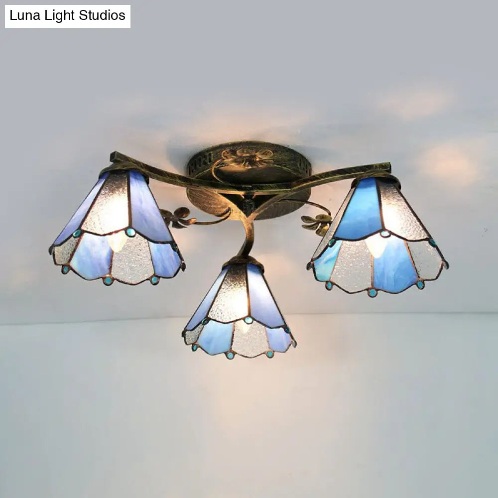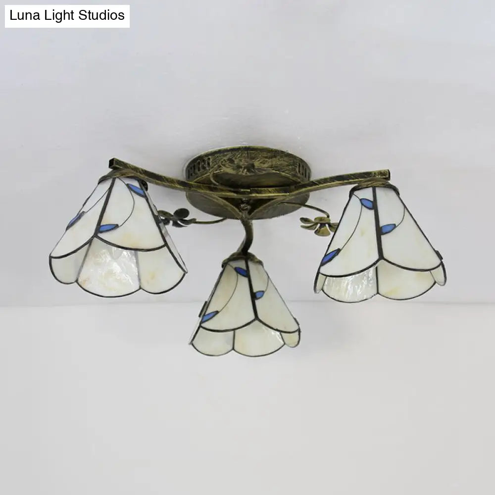 DecorBites™ DecorBites™ Stained Glass Tiffany Style Flushmount Light with 3 Lights - White/Clear/Blue/Beige