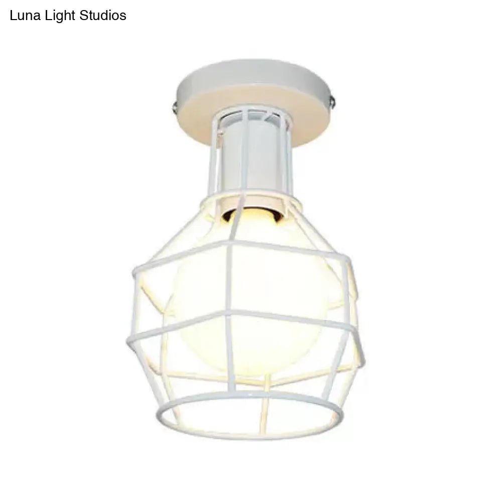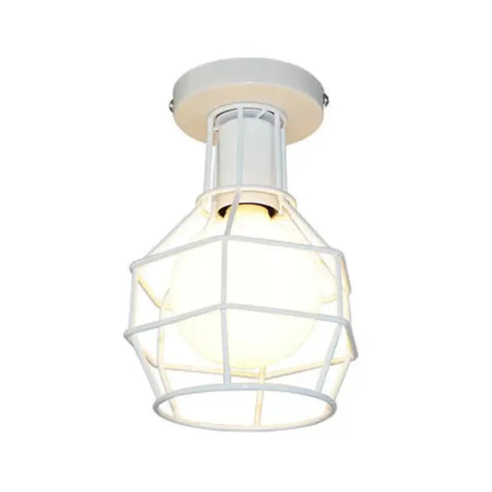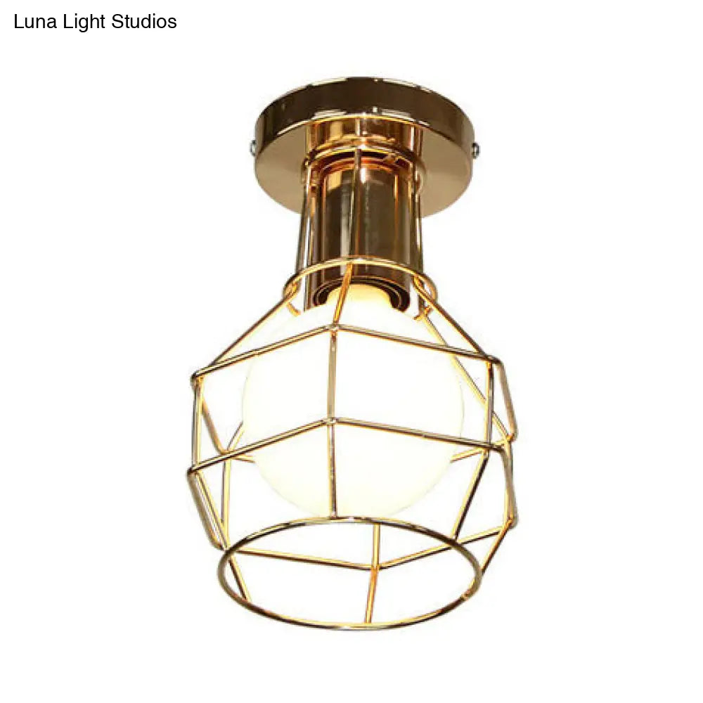 DecorBites™ DecorBites™ Stylish Antique Wire Guard Semi Mount Ceiling Light - 1 Head - White/Gold - Corridor