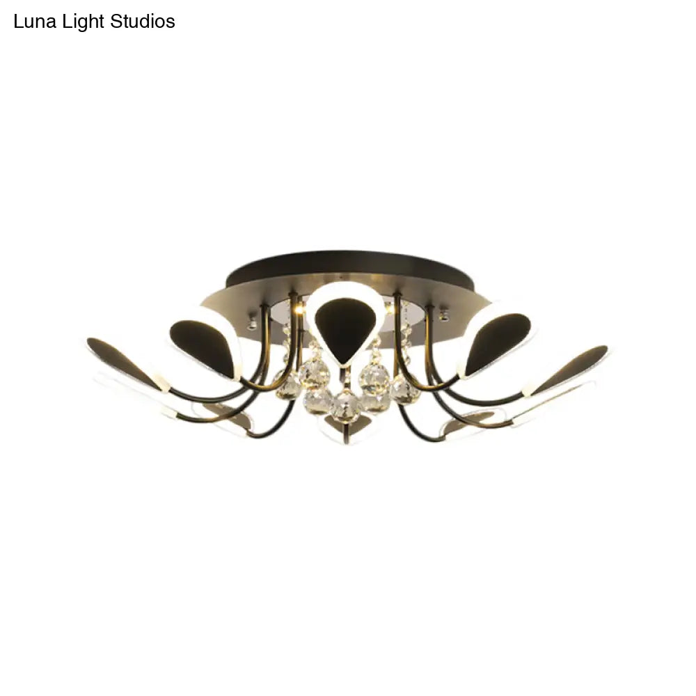 DecorBites™ DecorBites™ Teardrop Flushmount Bevel Cut Glass Ceiling Fixture - Modern Style, Black/White, 10/12 Bulbs, Warm/White Light