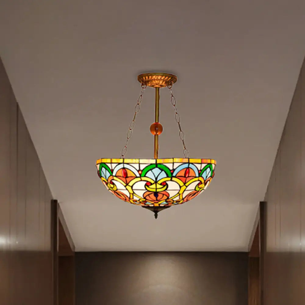 DecorBites™ DecorBites™ Tiffany Baroque Bowl Stained Glass Ceiling Light - Green/Red Semi Flush Mount for Villas