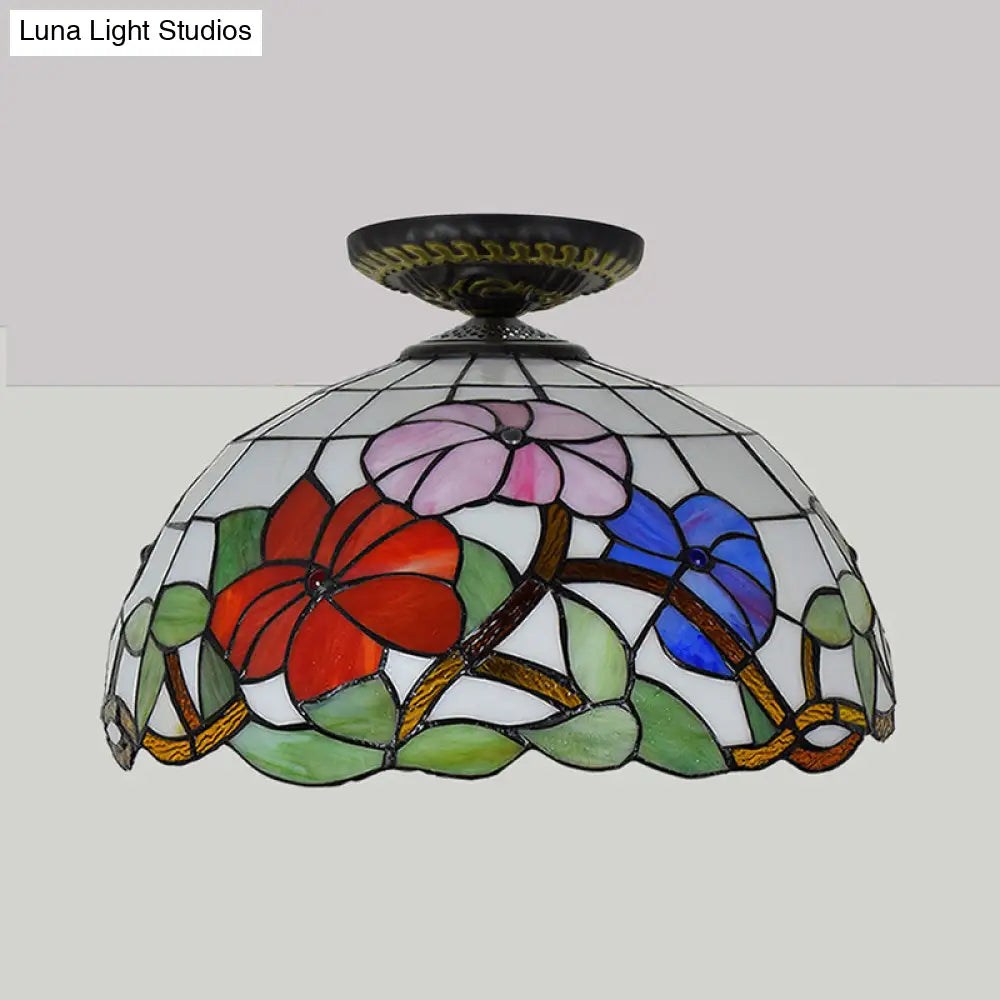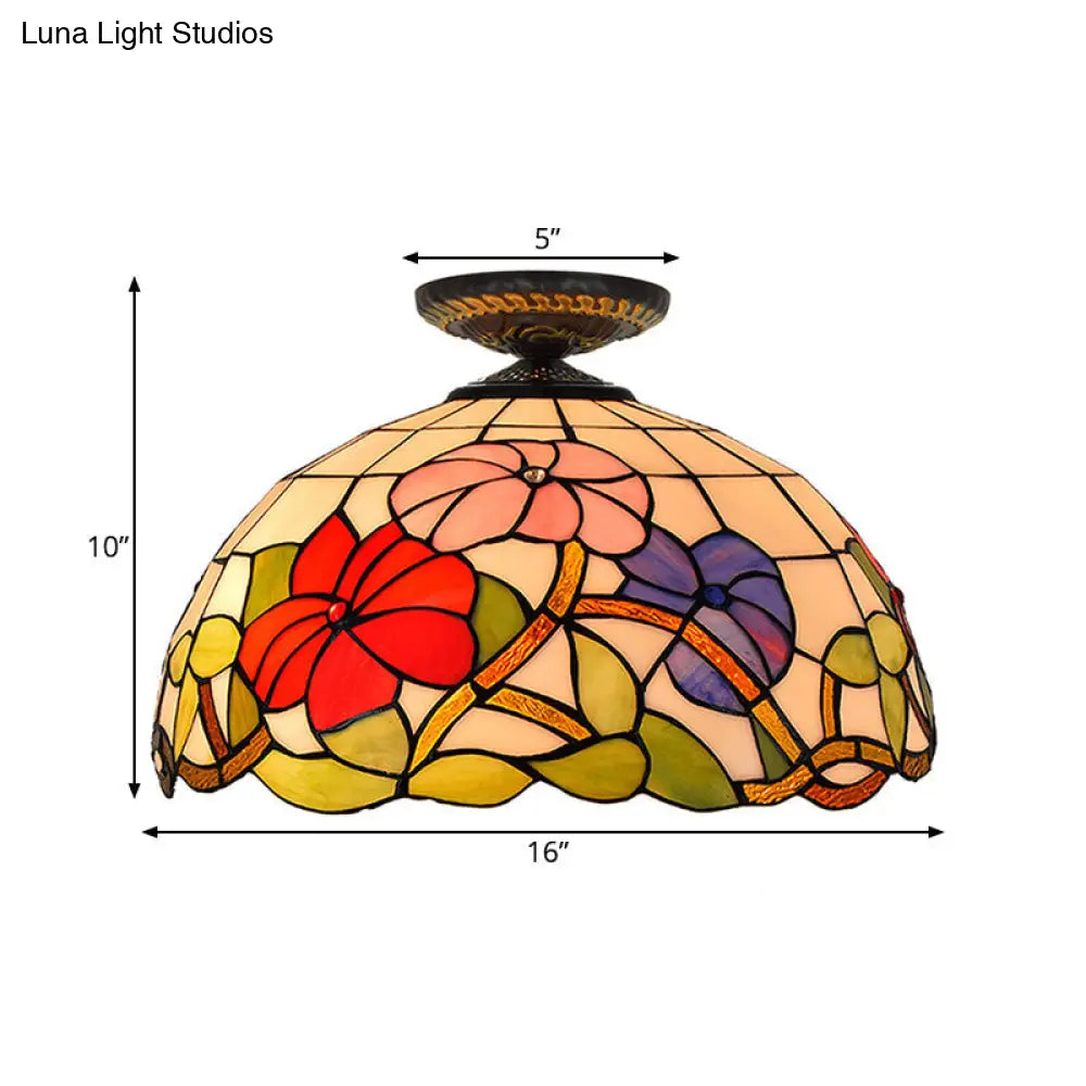 DecorBites™ DecorBites™ Tiffany Peony Flush Mount Lamp: Stained Glass Ceiling Lighting Fixture in Bronze, 12"/16" Wide