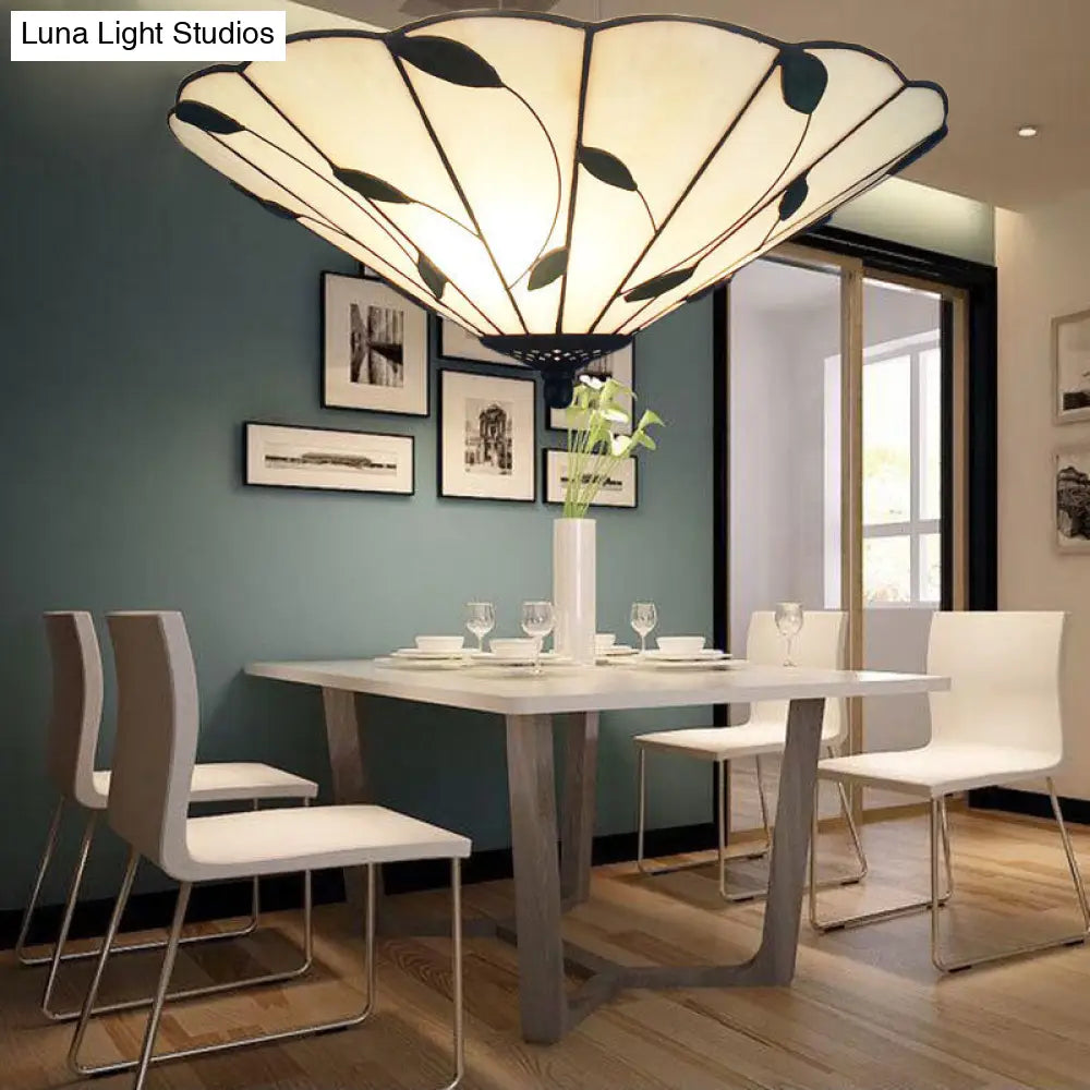 DecorBites™ DecorBites™ Tiffany Stained Glass Ceiling Light with Geometric Design and Leaf Theme (3 Lights, White/Beige Flush Mount)