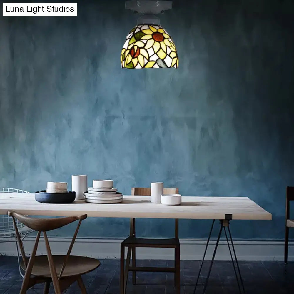 DecorBites™ DecorBites™ Tiffany Stained Glass Sunflower Ceiling Light for Bedroom - 9" High x 8" Diameter