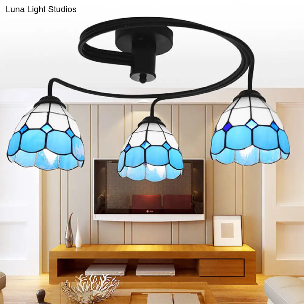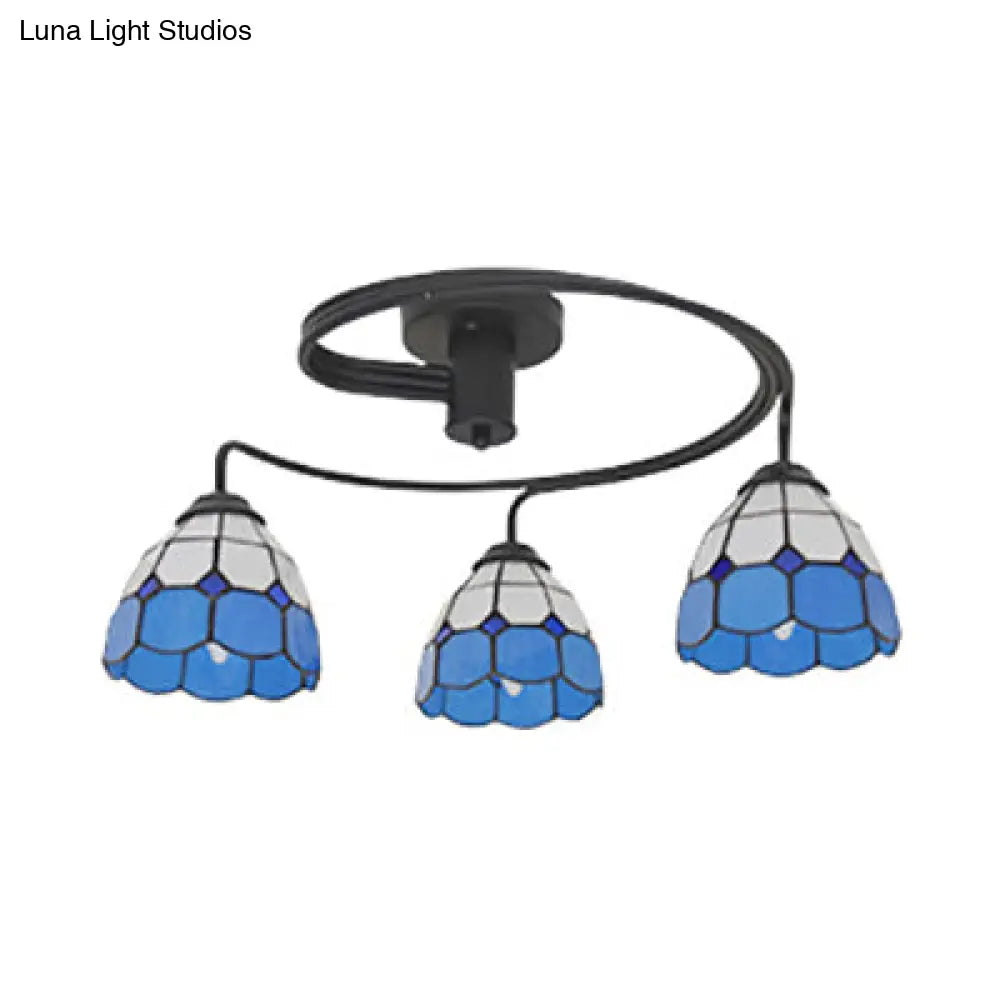 DecorBites™ DecorBites™ Tiffany Style 3-Light Bowl Semi Flushmount with Stained Glass in Orange/Pink/Blue - Perfect for Living Room