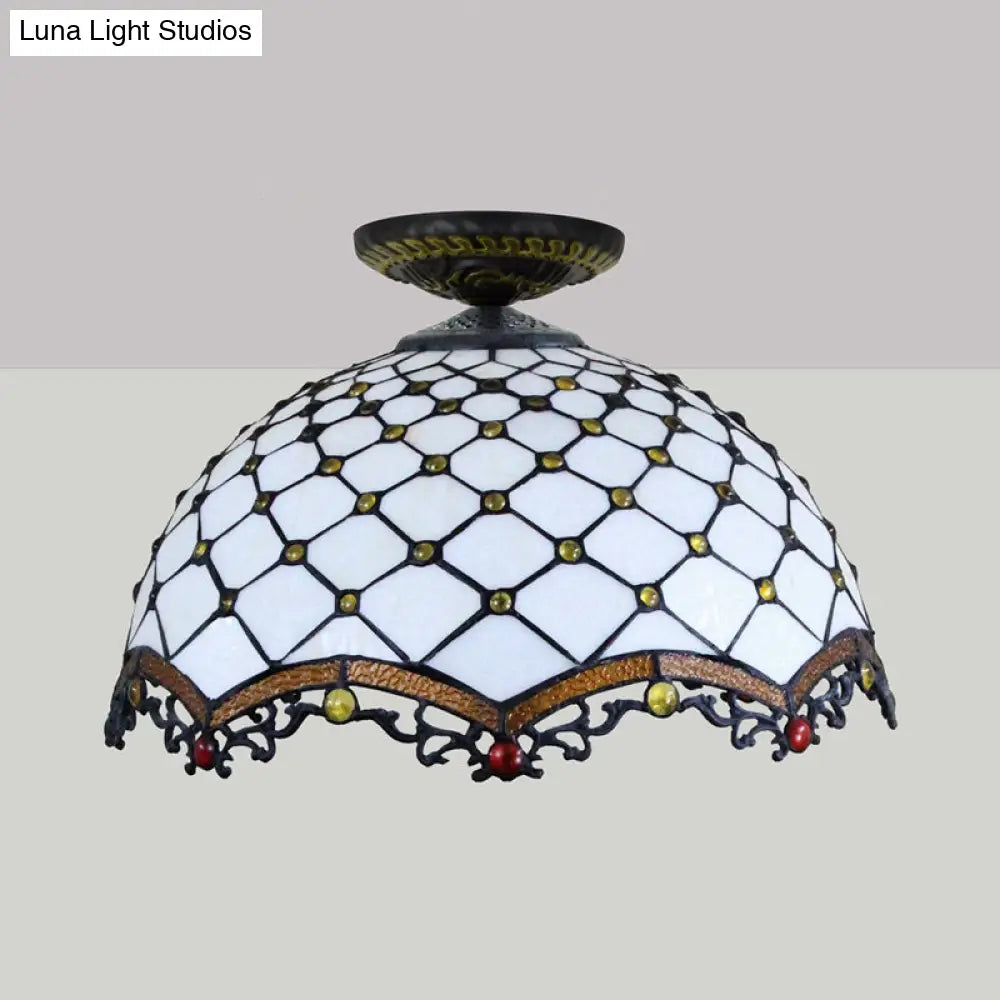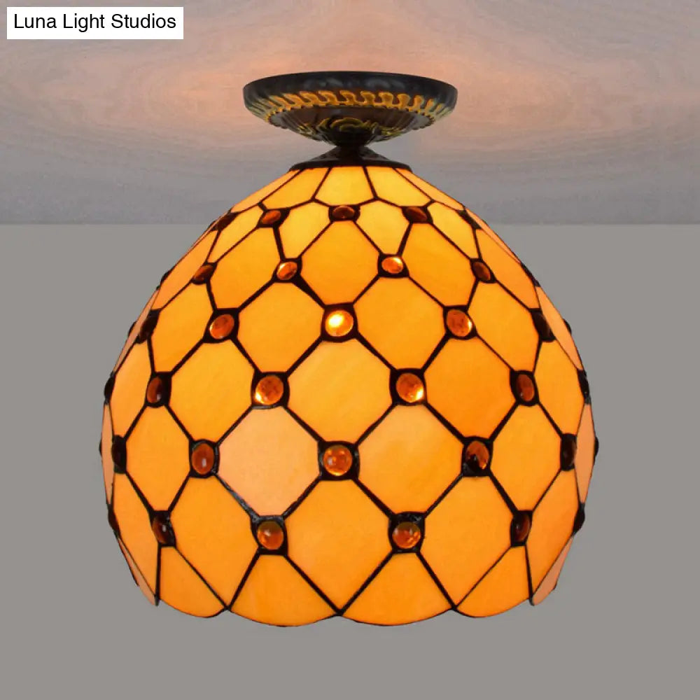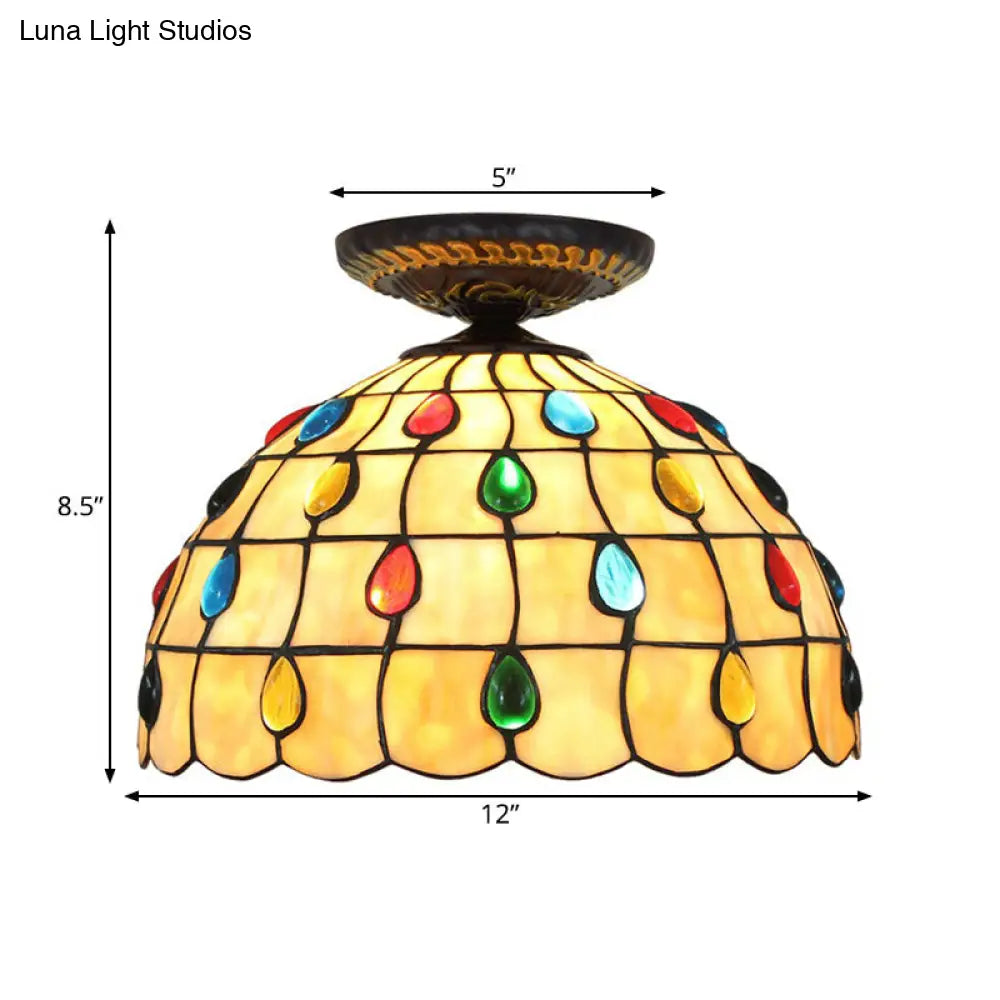 DecorBites™ DecorBites™ Tiffany-Style Stained Glass Jeweled Ceiling Light in Bronze Flush Mount, Multiple Sizes Available