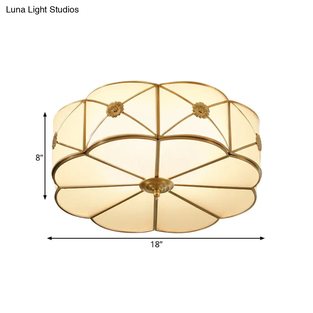 DecorBites™ DecorBites™ Traditional 1-Tiered White Glass & Gold Flush Mount Chandelier - 3/4/6 Bulbs (14"/18"/23.5" Width)