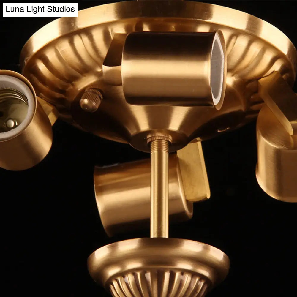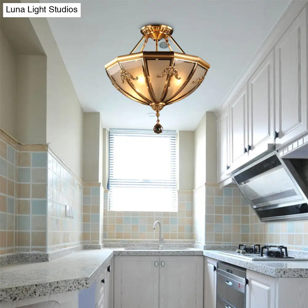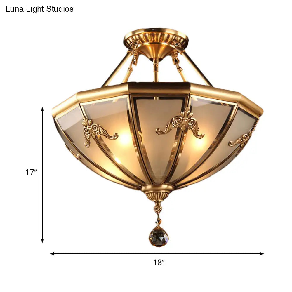 DecorBites™ DecorBites™ Traditional Brass Semi-Flush Mount Chandelier with Curved Frosted Glass Dome - 4 Lights Ceiling Mounted Light for Living Room