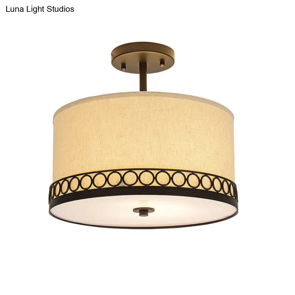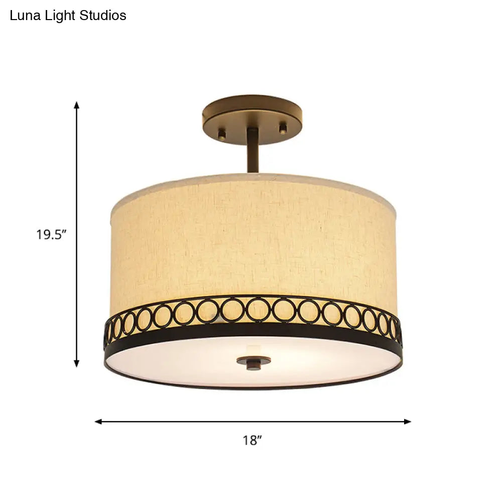 DecorBites™ DecorBites™ Traditional Drum Fabric Ceiling Light Fixture in Black for Bedroom Semi-Mount
