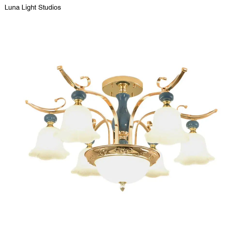 DecorBites™ DecorBites™ Traditional Gold 6-Bulb Semi Flush Mount Chandelier with Opal White Glass Shade