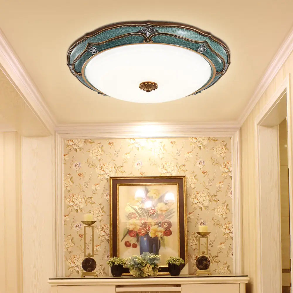 DecorBites™ DecorBites™ Traditional Green Resin Ceiling Mounted LED Flower Flush Mount Lamp - 16"/19.5"/13" Sizes for Living Room in White Light