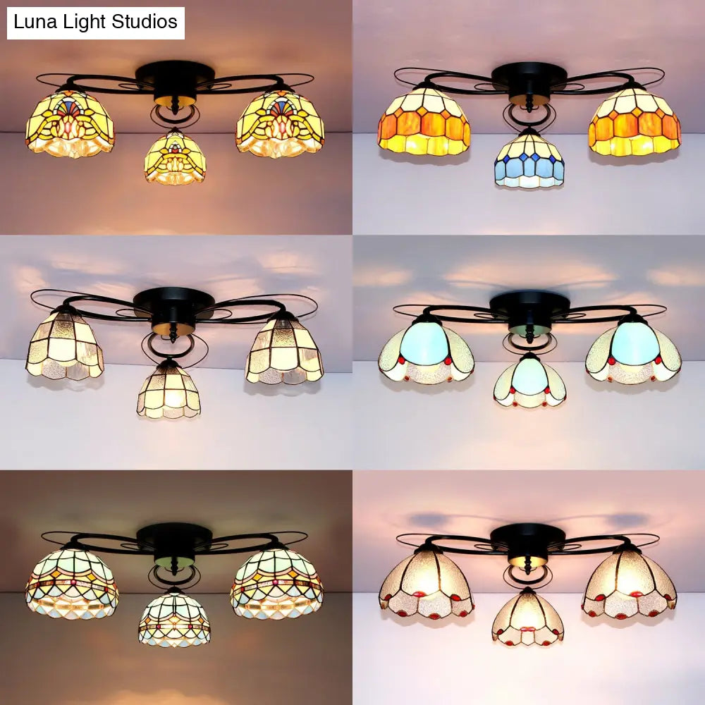 DecorBites™ DecorBites™ Victorian Stained Glass Ceiling Fixture - Dome Shape, Black Flush Mount with 3 Lights