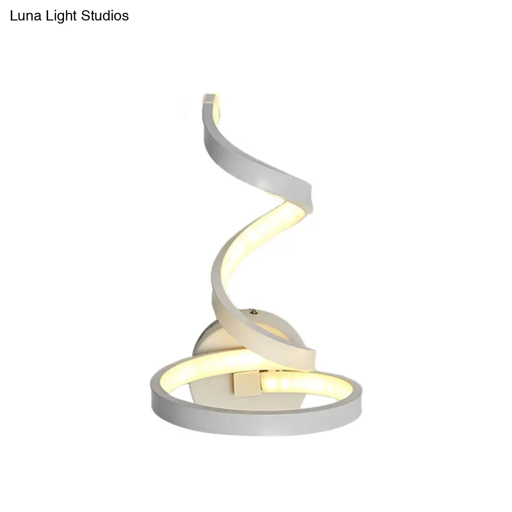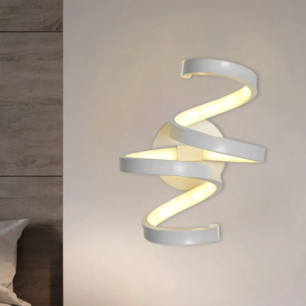 This wall lamp is a great addition to any living room. It is made of metal and has a white finish. The lamp has a snaking/musical note/entwining design with an acrylic shade. It comes with a direct wired electric power source and is wall mountable. This light is also available in 3 different color temperatures.