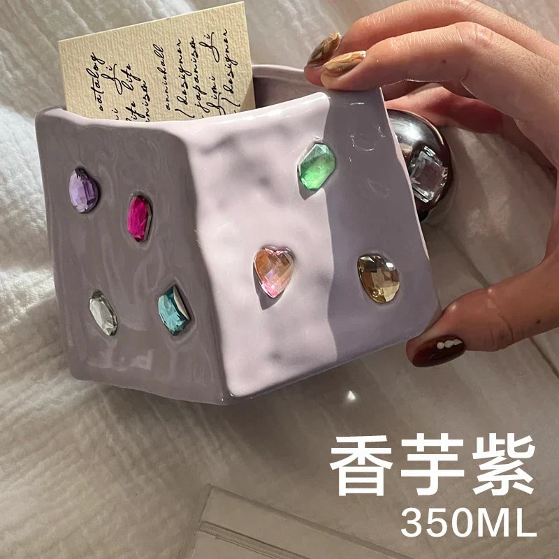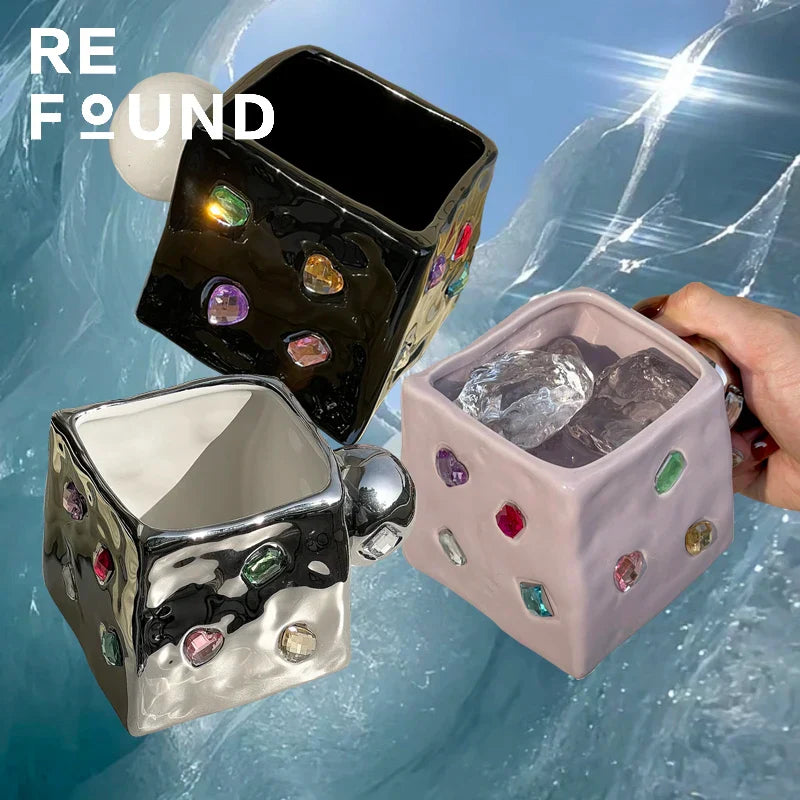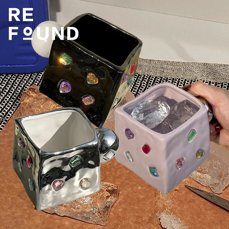 DecorBites™ Diamond Ceramic Square Americana Coffee Mug Set - Handcrafted Jewelry Inspired Drinkware