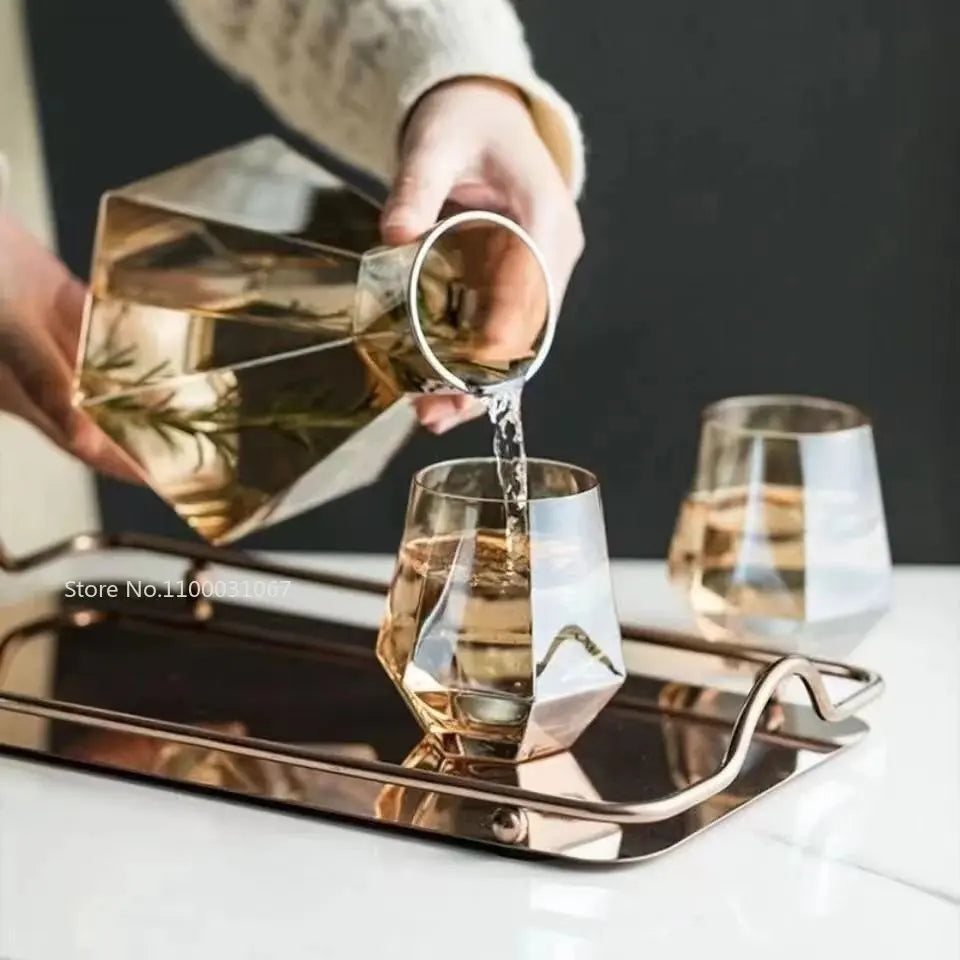 DecorBites™ Diamond Crystal Glass Water Kettle Cup Set - Clear Luxury Juice Pitcher