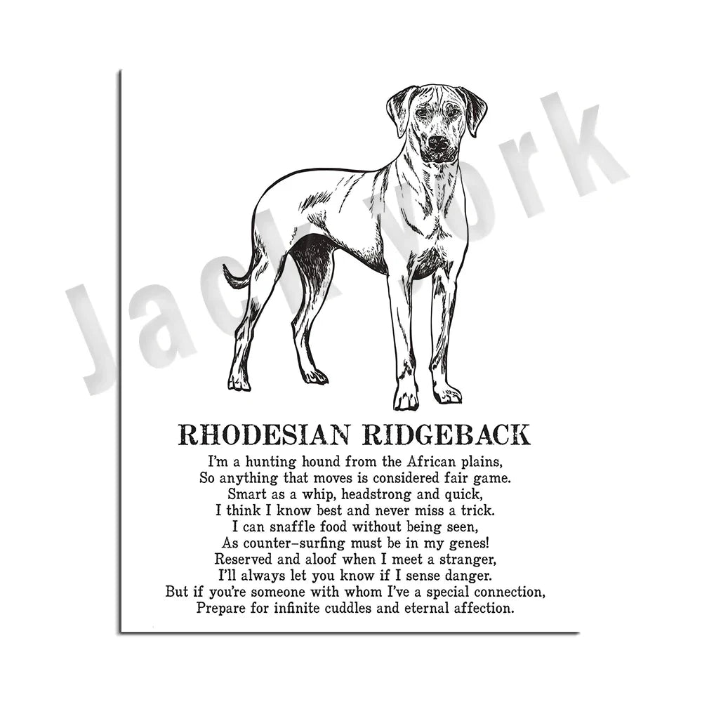 DecorBites™ Dog Breed Poster featuring Rhodesian Ridgeback, Havanese, and More