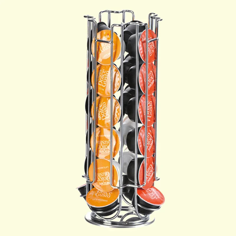 Introducing the Decorbites Dolce Gusto Coffee Pod Holder and Tamper Stand for 24 Capsules, a must-have accessory for coffee lovers who appreciate style and functionality in their kitchen setup.