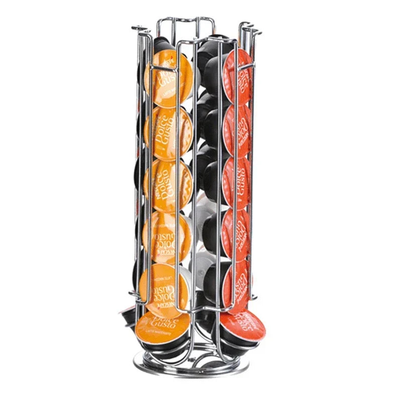 The Decorbites Dolce Gusto Coffee Pod Holder and Tamper Stand is not just a storage solution, but also a convenient way to keep your favorite coffee pods organized and easily accessible. With a capacity of 24 capsules, you can neatly display a variety of flavors for you and your guests to choose from.