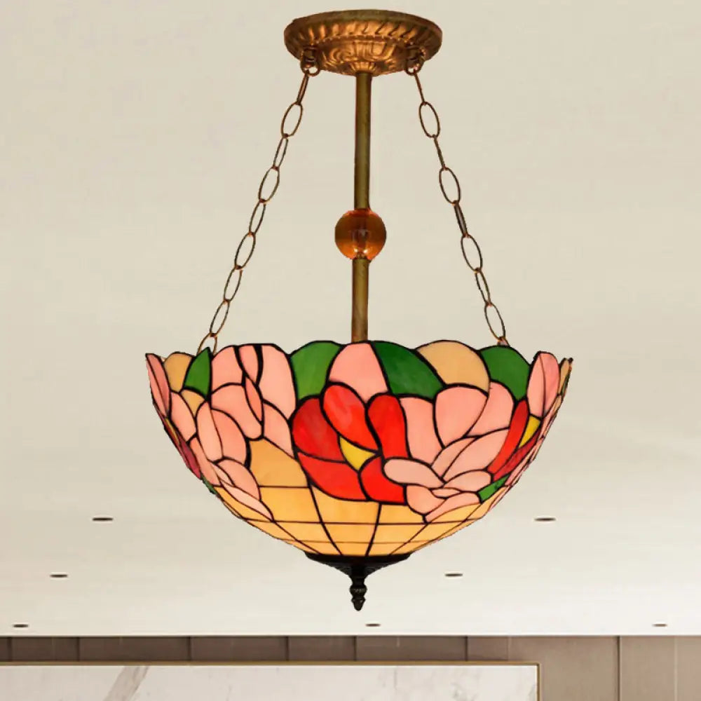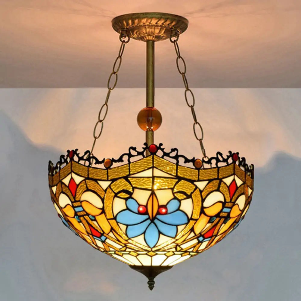 DecorBites™ Dome-Shaped Stained Glass Semi Flush Light - Retro Style for Dining Room (16" W, 1 Light)
