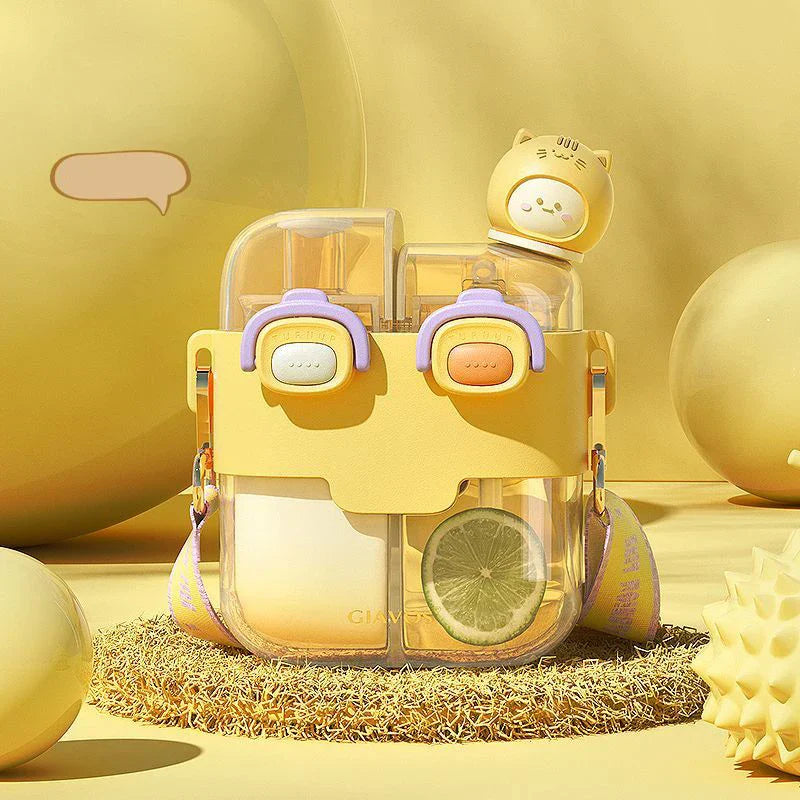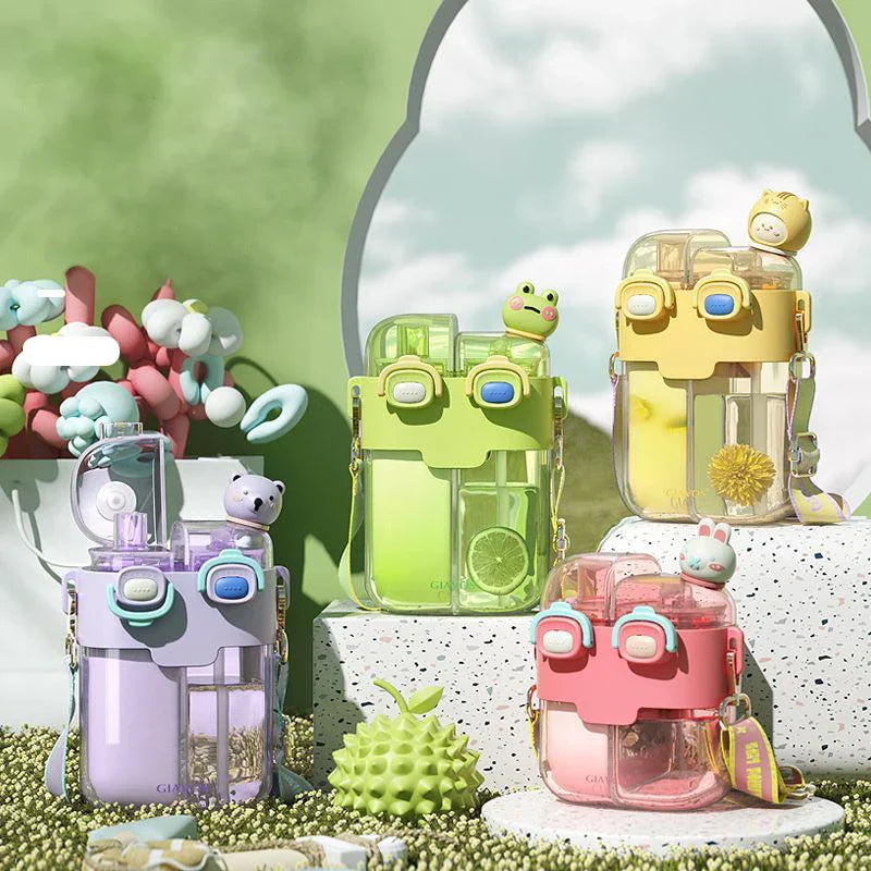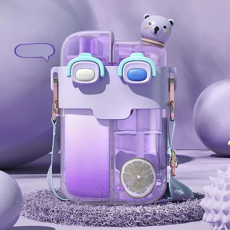 DecorBites™ Double-Bin Sippy Cup | Kids Cartoon Water Bottle with Adjustable Strap