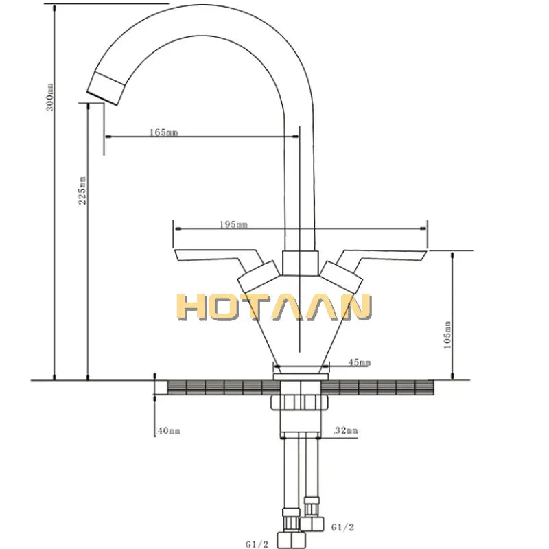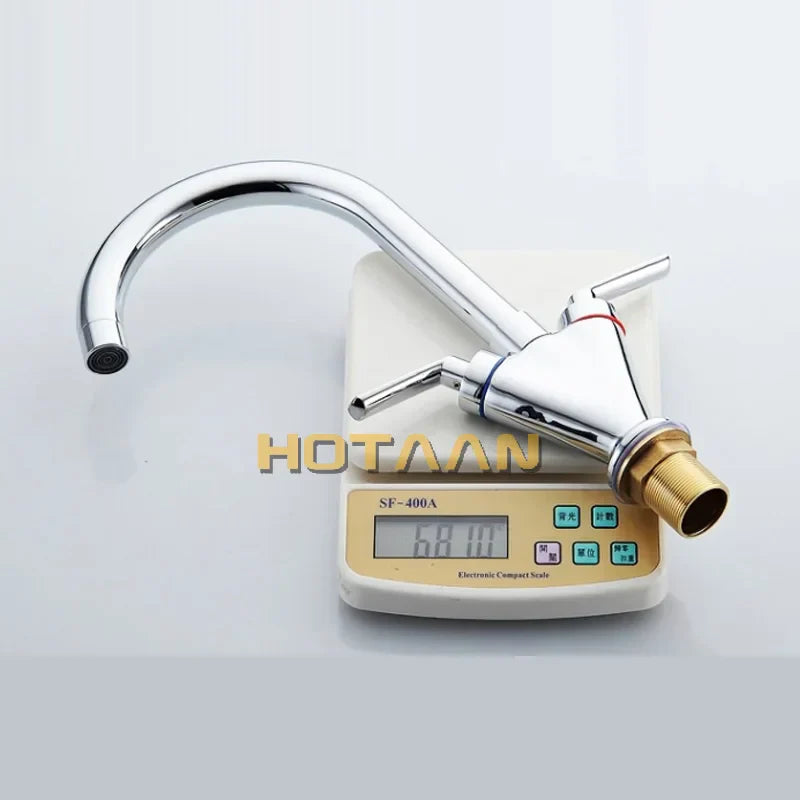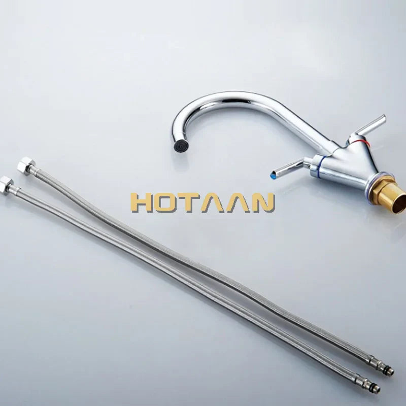 Introducing the Double Handle Kitchen Sink Mixer Tap, Round Swivel Faucet - a perfect blend of style and functionality for your kitchen. This dual handle faucet, model number YT-6041, features a polished surface treatment that adds a touch of elegance to your space.
