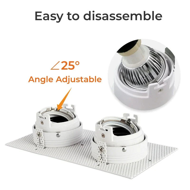 Crafted with high-quality aluminum, this rimless hidden recessed LED ceiling downlight bracket is designed to elevate the ambiance of any room. The square anti-glare LED GU10/MR16 LED spotlight frame base is not only stylish but also functional, providing a seamless and polished look to your lighting setup.