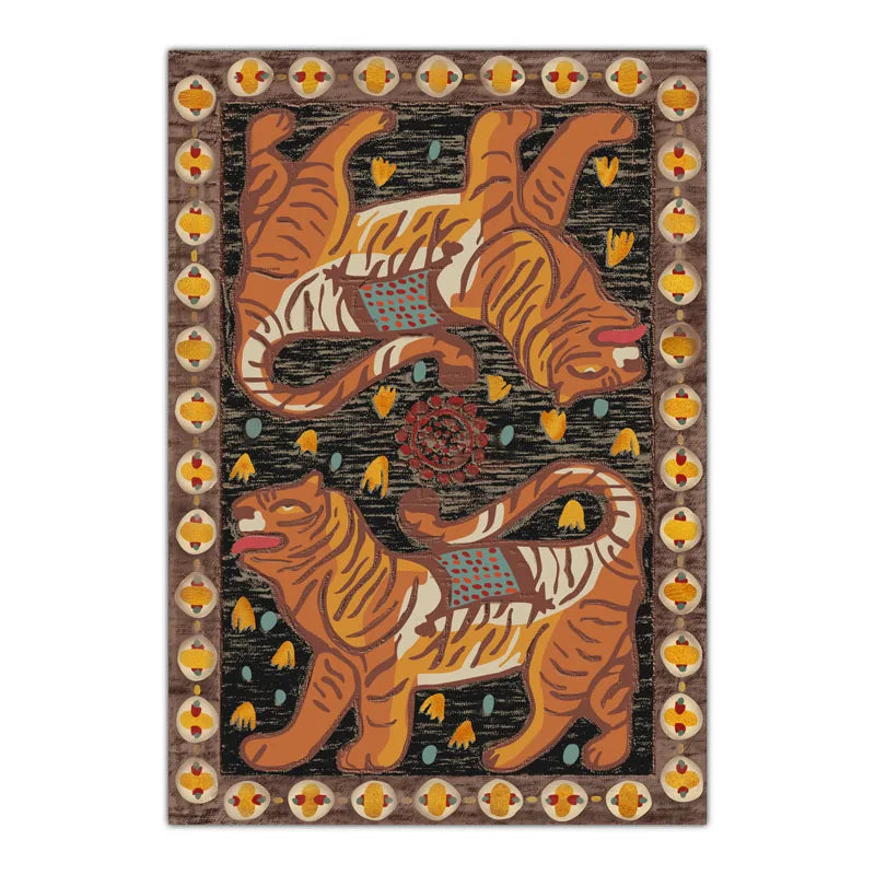 DecorBites™ Double Tiger Bohemian Moroccan Rug Retro Decor for Living Room
