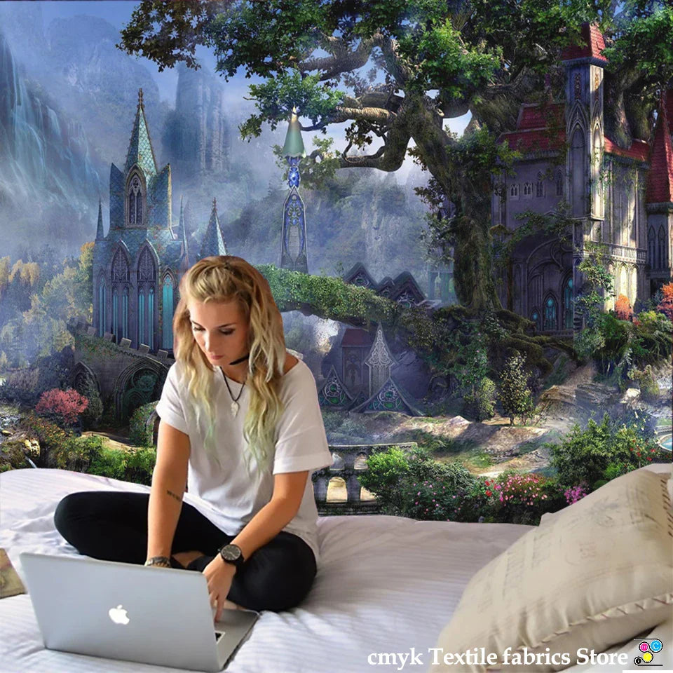 DecorBites™ Dreamy Castle Mushroom Tapestry Psychedelic Wall Hanging Hippie Kids Decor