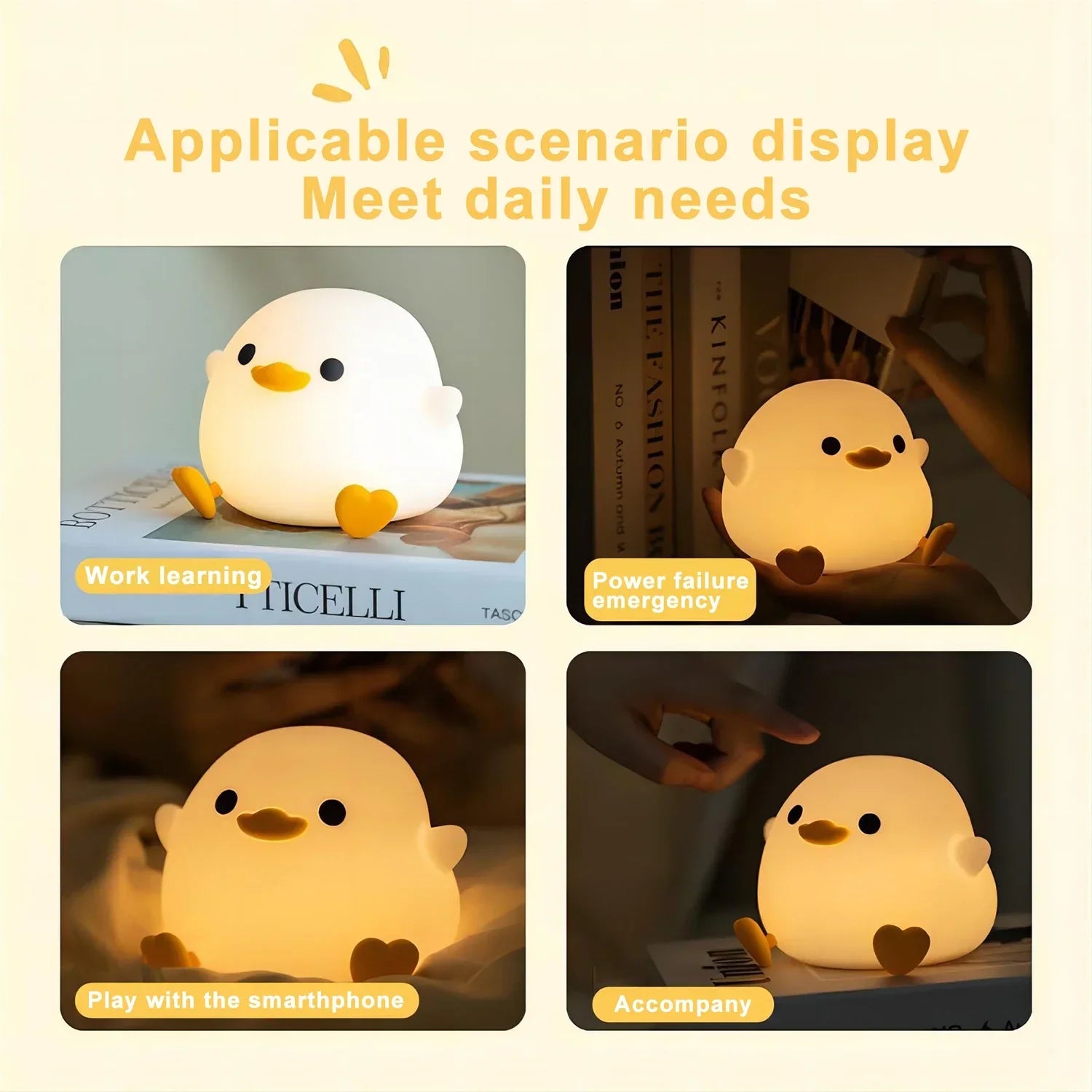 DecorBites™ Duck Silicone Night Light with Timer, Rechargeable USB, Dimming Touch Lamp