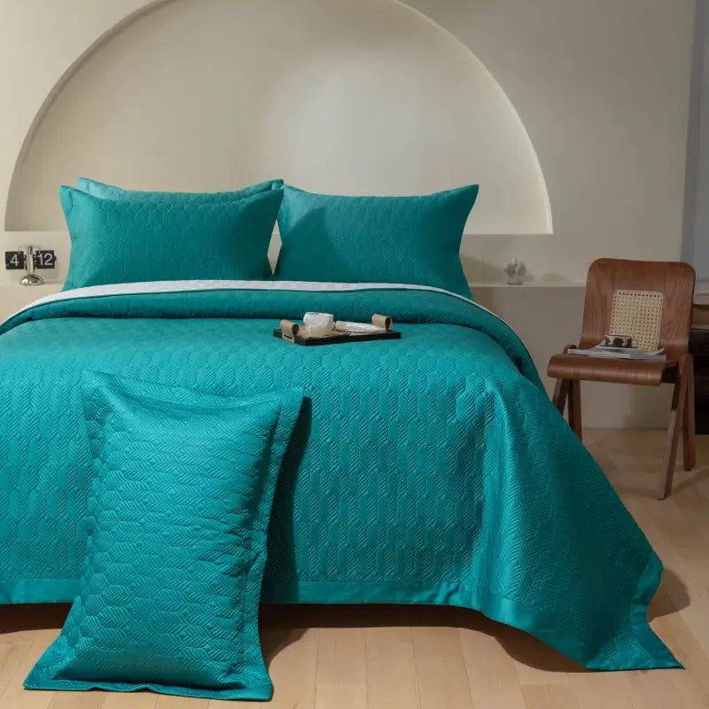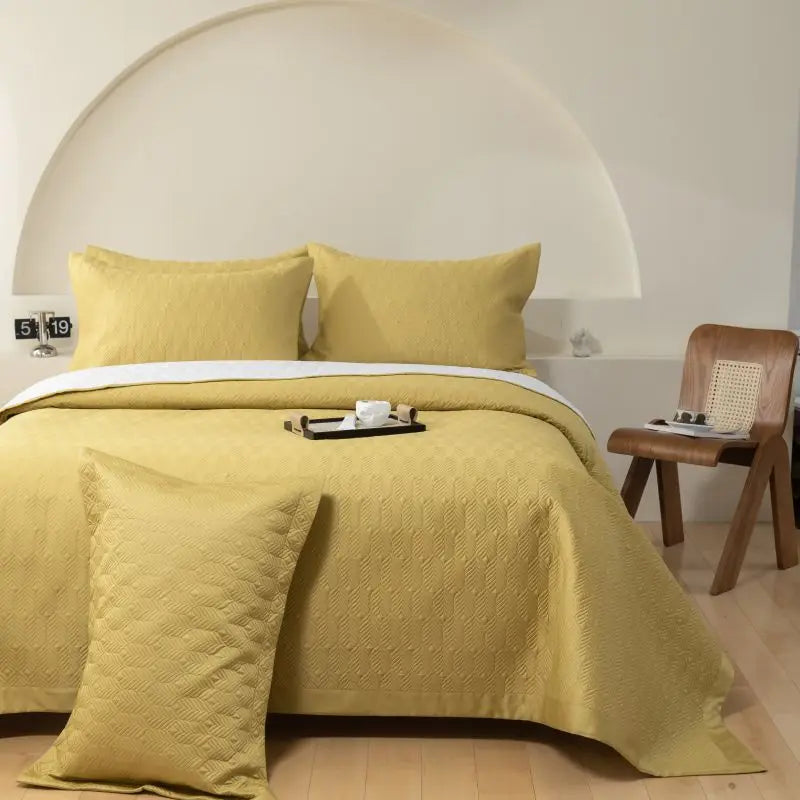 Transform your bedroom into a retreat with this exquisite bedspread set, offering both comfort and sophistication. Elevate your sleeping experience with the Egyptian Cotton Solid Color Quilted Bedspread Set and enjoy a peaceful night's rest in style.