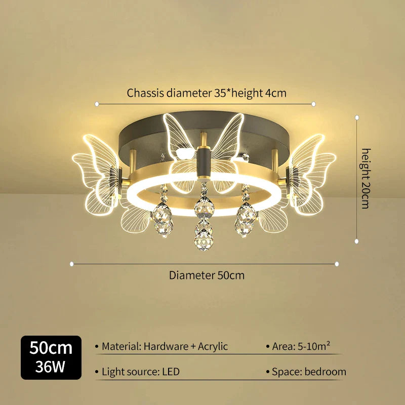 DecorBites™ Elegant Butterfly Flower Crystal Ceiling Lamp for Romantic Home Decor
