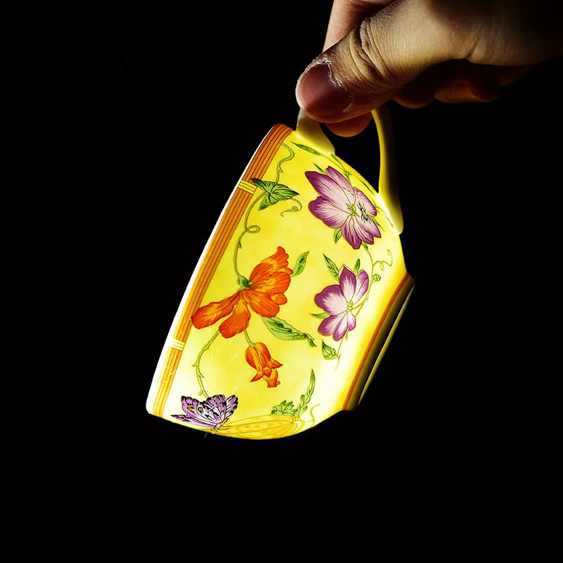 In a beautiful Yellow color with European style accents, the Decorbites Butterfly Kitchen Tableware Set is designed with popular countryside elements that bring a sense of charm to any occasion. The Flying Butterfly Design, meticulously handcrafted through an on-glazed process, adds a whimsical and enchanting touch to the set.