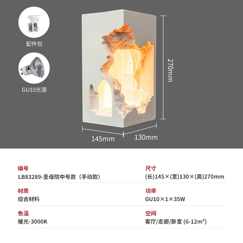 DecorBites™ Embedded Night Light Gypsum Corner Wall Sconces for Corridor Stair Background