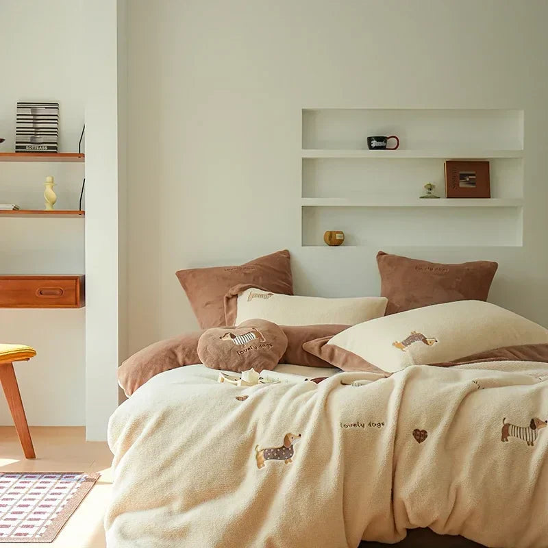 DecorBites™ Embroidered Cashmere Winter Duvet Set | Queen Size Warm Bedding & Blanket Cover
