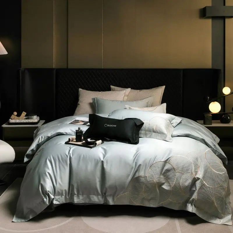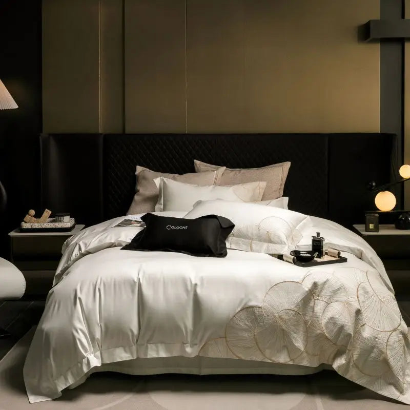 Experience unparalleled comfort with the Embroidered Egyptian Cotton Bedding Set. Order now and enjoy fast shipping to your doorstep. Upgrade your sleep experience with our premium bedding set today.