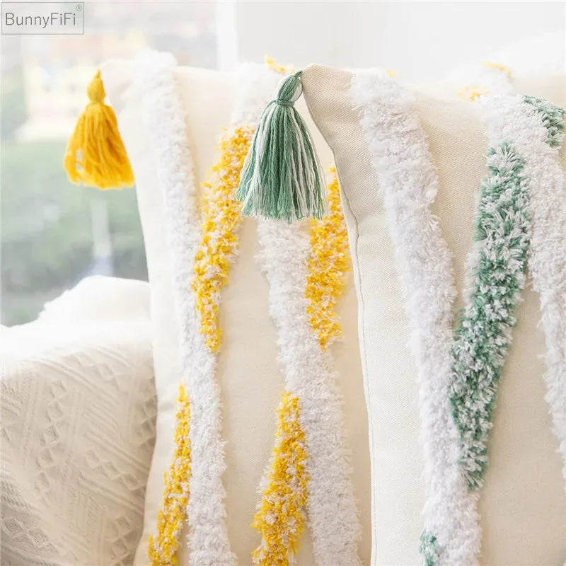 With its handmade technics, this pillow cover exudes a sense of artisanal craftsmanship that sets it apart from mass-produced alternatives. Each stitch is carefully done to ensure quality and longevity, making it a timeless addition to your home decor collection.