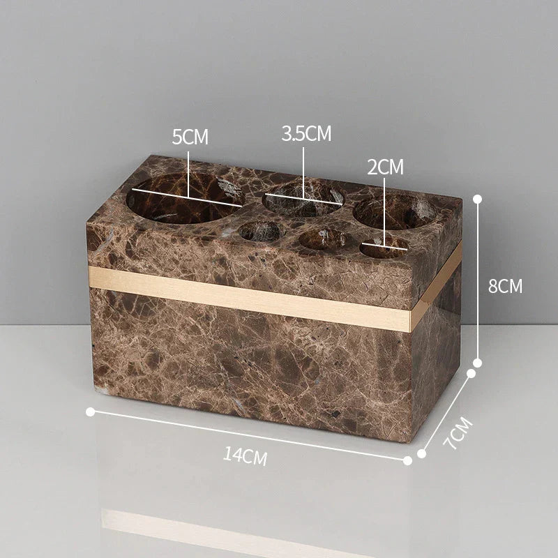 DecorBites™ Emperador Dark Marble Bathroom Set: Toothbrush Holder, Soap Dispenser, Luxury Accessories