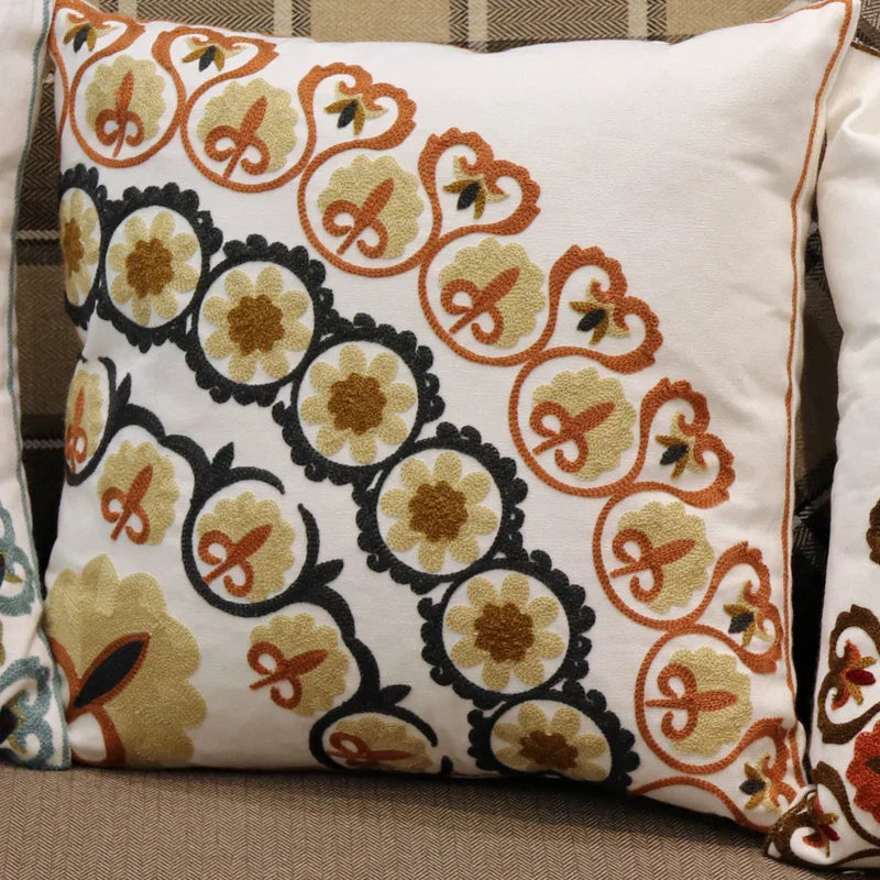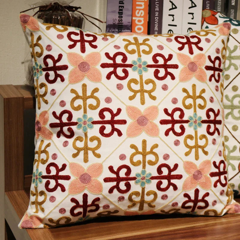 DecorBites™ Ethnic Flower Elephant Pillowcase, Hand-Embroidered Boho Cushion Cover