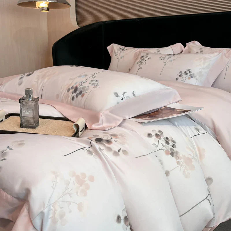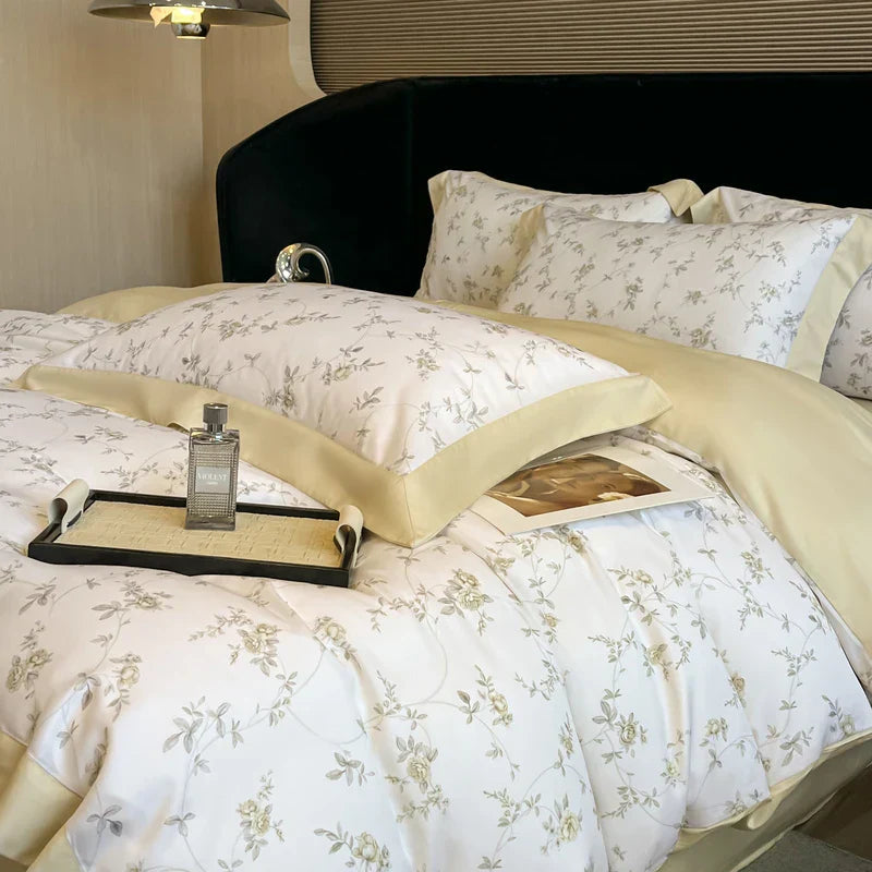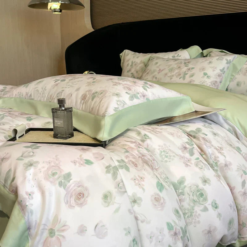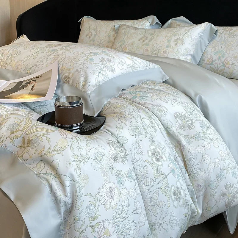DecorBites™ Eucalyptus Fiber Flowers Bedding Set: Duvet Cover, Bed Sheet, Pillowcase - 4Pcs
