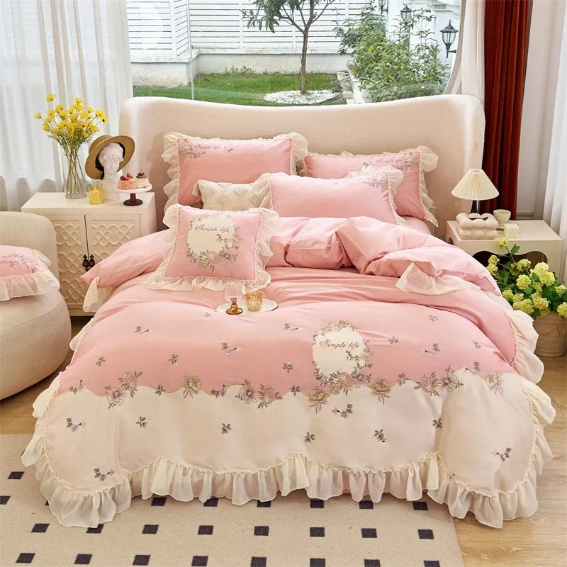 Introducing the Decorbites Flowers Lace Ruffles Princess Wedding Bedding Set from our HOME TEXTILE collection. This luxurious bedding set is designed to bring a touch of elegance and charm to your bedroom. Crafted from high-quality 1000TC Egyptian Cotton, this bedding set is sure to provide you with the ultimate comfort and style.