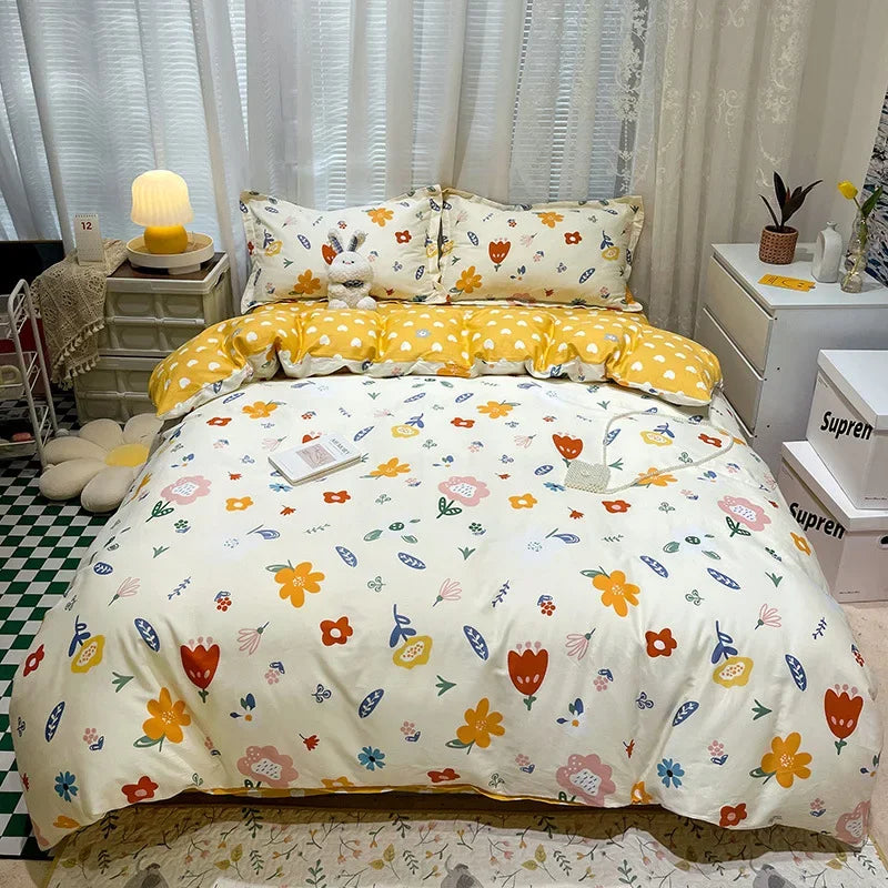 Designed for the Northern European aesthetic, the Decorbites Flowers Print Cotton King Size Bedding Set meets national color fastness standards, ensuring long-lasting vibrancy. Whether you have a 3.3 feet or 6.6 feet bed, this set is sure to complement your sleeping space beautifully.