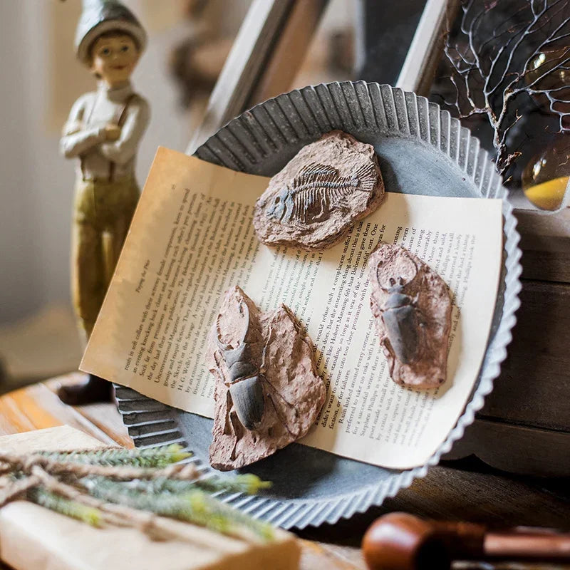 DecorBites™ Fossil Series Art Refrigerator Stickers: Fish Bone Beetle Marine Insect Specimen