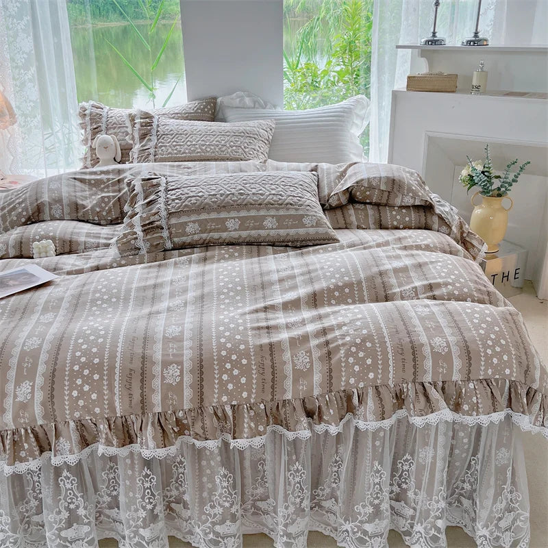 The bedding set includes a duvet cover, 2 pillowcases, and 1 bed skirt, offering a complete ensemble for a seamless look. Available in various sizes including Single, Twin, Full, Double, Queen, and King, ensuring a perfect fit for your bed.