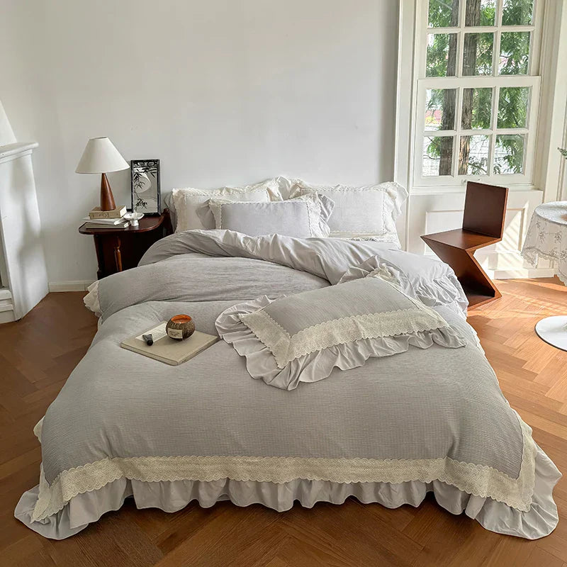 DecorBites™ French Lace Ruffles Bedding Set - Soft and Skin-friendly Duvet Cover Set