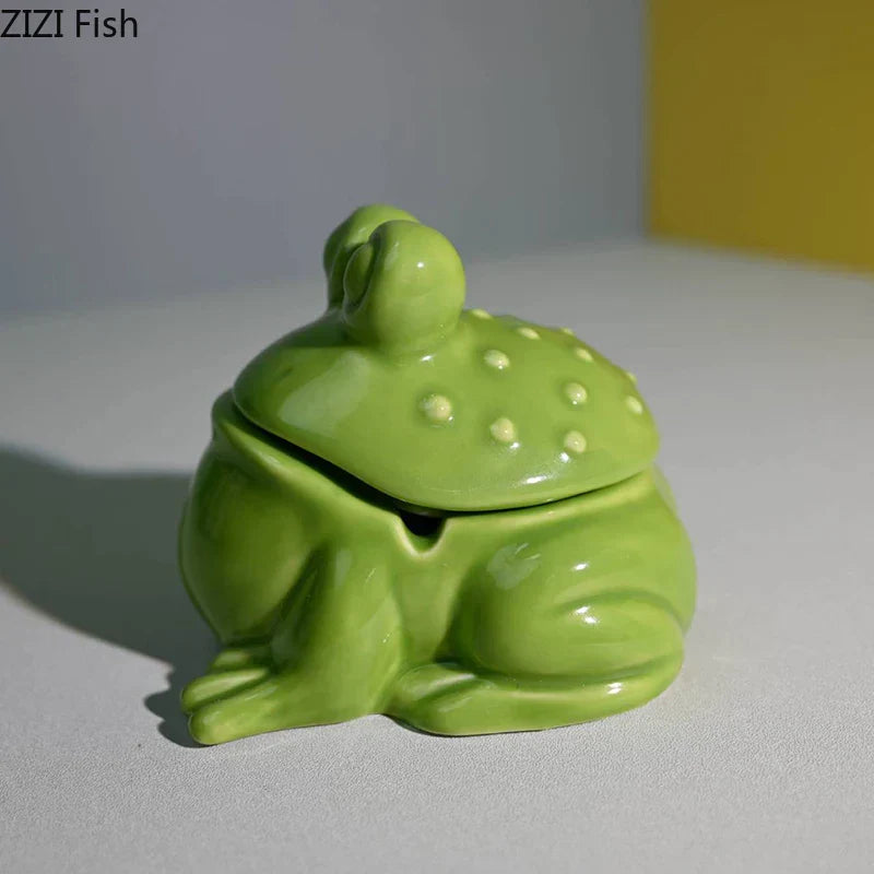 DecorBites™ Frog Ceramic Ashtray with Lid - Windproof Smoking Accessory