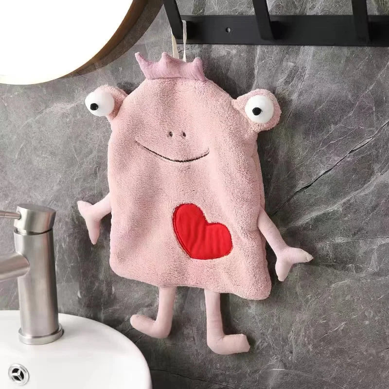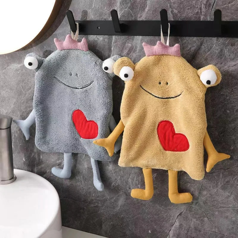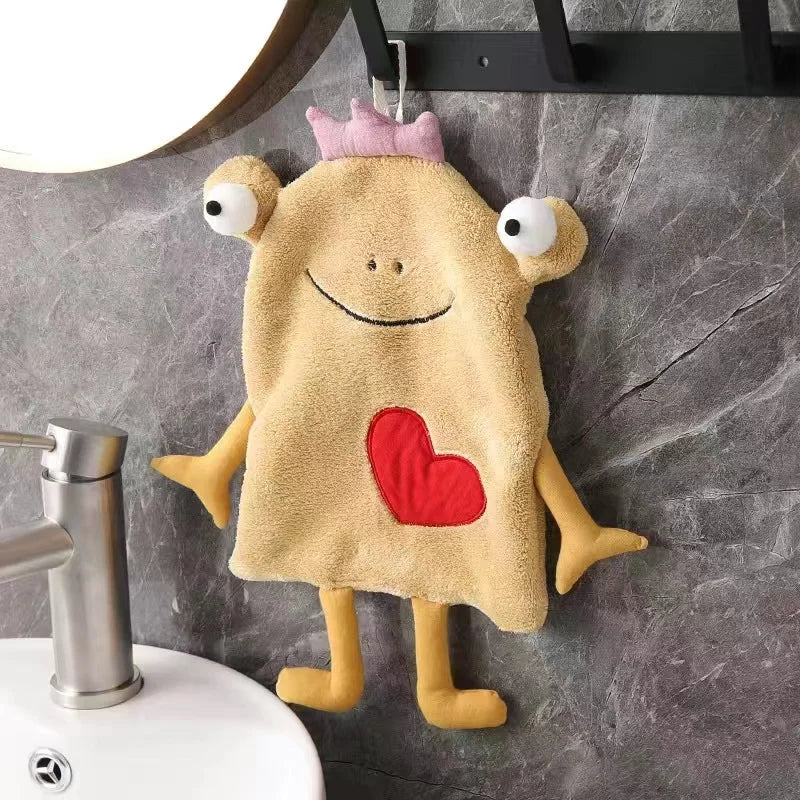 DecorBites™ Frog Design Hand Towel - Soft Coral Velvet, Kids Friendly, Absorbent & Multipurpose