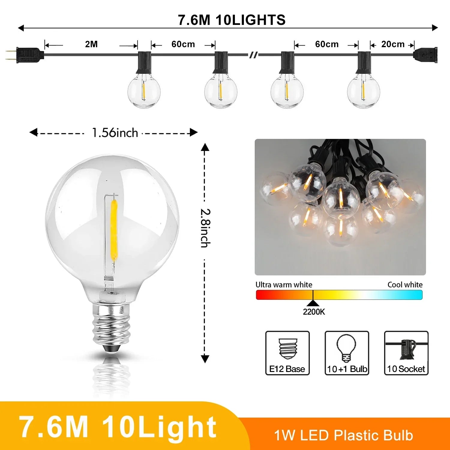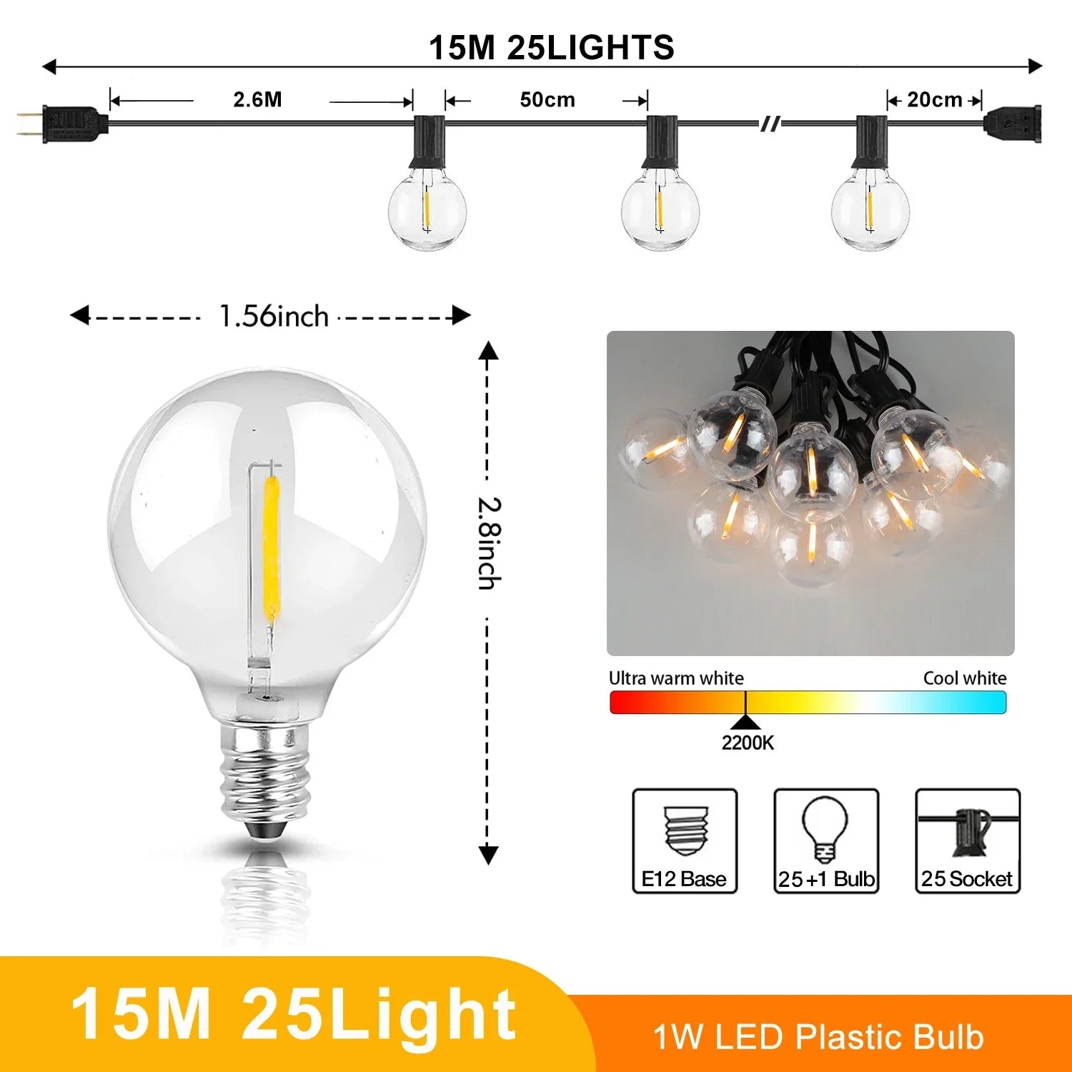 DecorBites™ G40 LED Shatterproof Globe Outdoor Patio String Lights