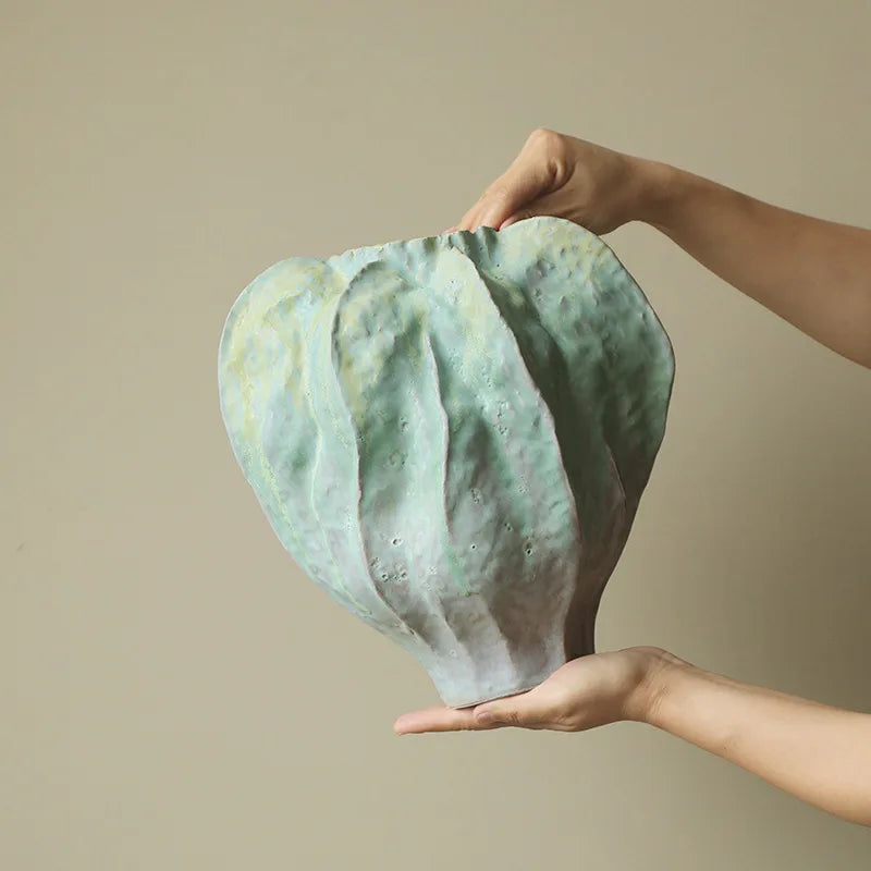 Crafted from high-quality ceramic and porcelain, this tabletop vase is designed to elevate any space with its unique geometric shape and abstract irregular folds. The size of this vase is Medium, making it versatile enough to display on any tabletop or shelf.