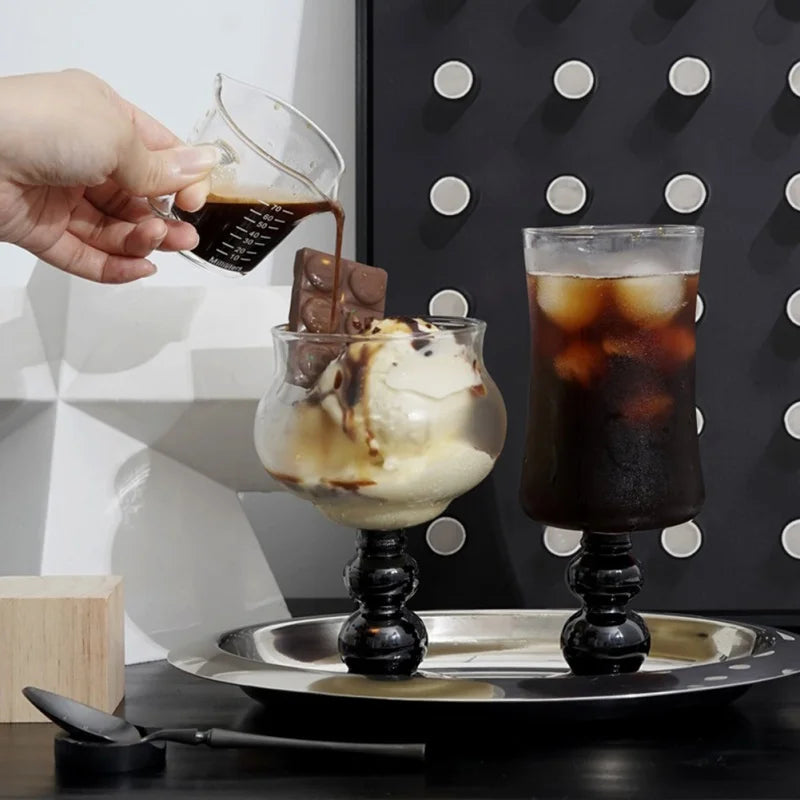 DecorBites™ Glass Beaded Stem Coffee Mug 13oz - Nordic Style Cocktail Cup Ice Cream Yogurt